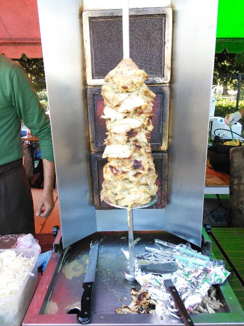 回ってます。 農業祭初出店のインド料理のラージさん。 手作りのナンに野菜とケバブをのせてはさんだ「ケバブナンサンド」を販売されていました。 赤いソースは甘い味、青いソースは辛い味なんだそうで、お好みで調整できます。 野菜たっぷりでボリューム満点です(^o^) 今回はチーズ入りができなかったので、チーズ入りをご希望のお客様ごめんなさいm(_ _)m ケバブが回りながら焼かれているのは、結構お客さんの目に止まったようですね(^^) 投稿ナビゲーション 十八番まんじゅう置き菓子が~(>_<) コメントを残すコメントをキャンセル