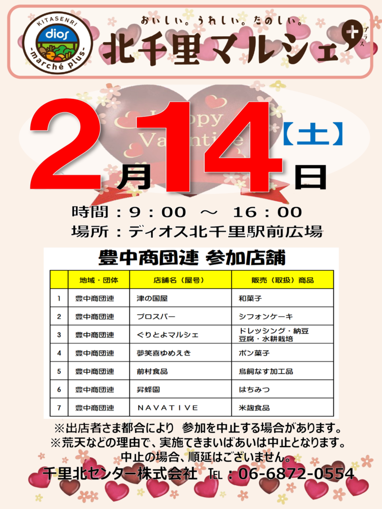 令和8年 北千里マルシェ(プラス)開催します 投稿ナビゲーション 2026年1月18日(日)おいなりさんの第3日曜朝市を開催いたします2026年 2月15日(日)おいなりさんの第3日曜朝市を開催いたします コメントを残すコメントをキャンセル