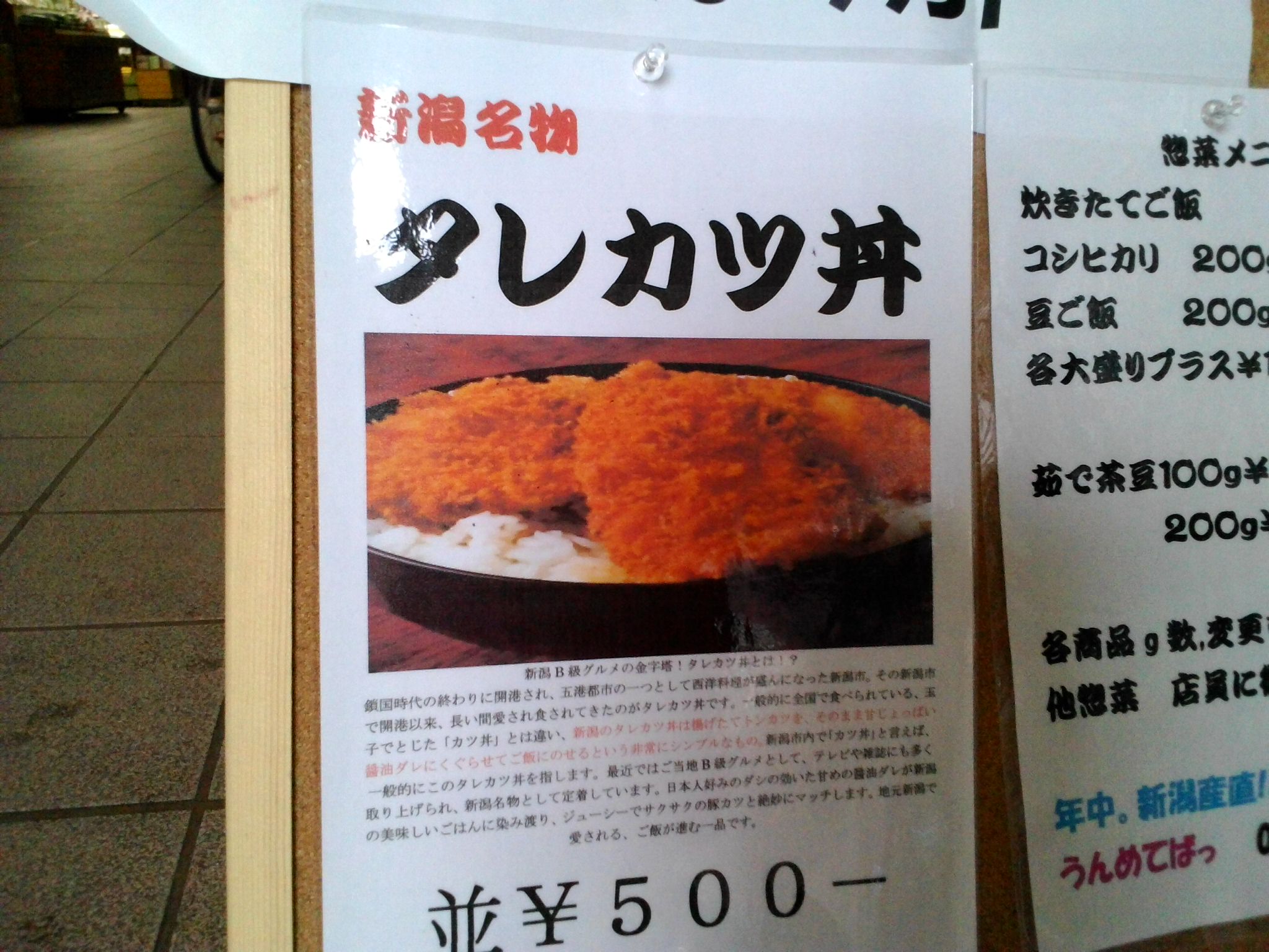 出来ています 服部 富貴屋さんに伺った時に、商店街に新潟の物産店が出来たと 伺いました。 出来ています~~、食べる所もあります。。 お米、お酒、お菓子。 そして タレカツ丼(?_?) へーえ?カツだけ?かなーψ(‘ー’*) 今度 食べたら、ご報告しますね~(^O^) 投稿ナビゲーション 文化祭のパン新製品ヽ(^-^ ) コメントを残すコメントをキャンセル