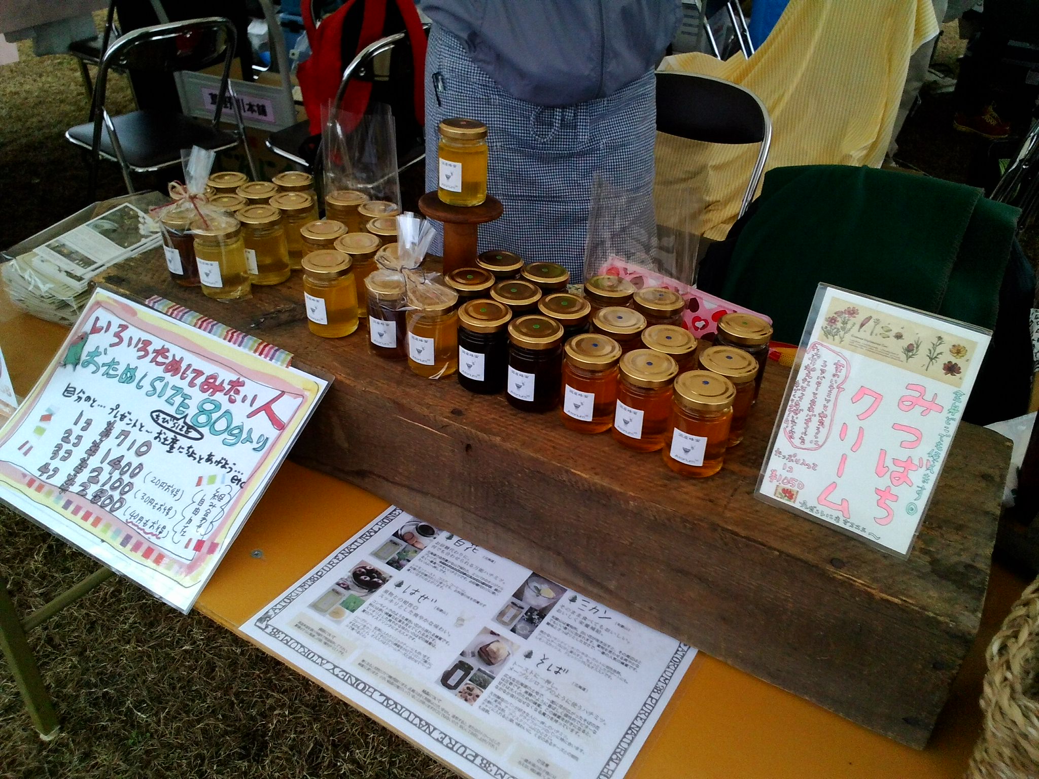 アトリウム 岡町 アトリウム 地ヂカラに2日間、出店でした。お尋ねした時に、今 大きいのが売れたの。と、喜んでおられました。いつも 椅子に座って 落ちついていて、ディスプレイも上手くていいな~って思うんです。北海道、和歌山と蜂蜜の採取をされ、お店で瓶詰めまでされています。私は、何故かいただく事が多くて、蜂蜜をあまり自分で買った事がないのです。知識無しなので、色々教えて頂きたいな。(^-^) 今日迄の出店でしたが、明日は丹波篠山にて販売をされるそうです。 投稿ナビゲーション 今日の地ヂカラヤムヤムクッキーさん@地ヂカラフェスタ コメントを残すコメントをキャンセル