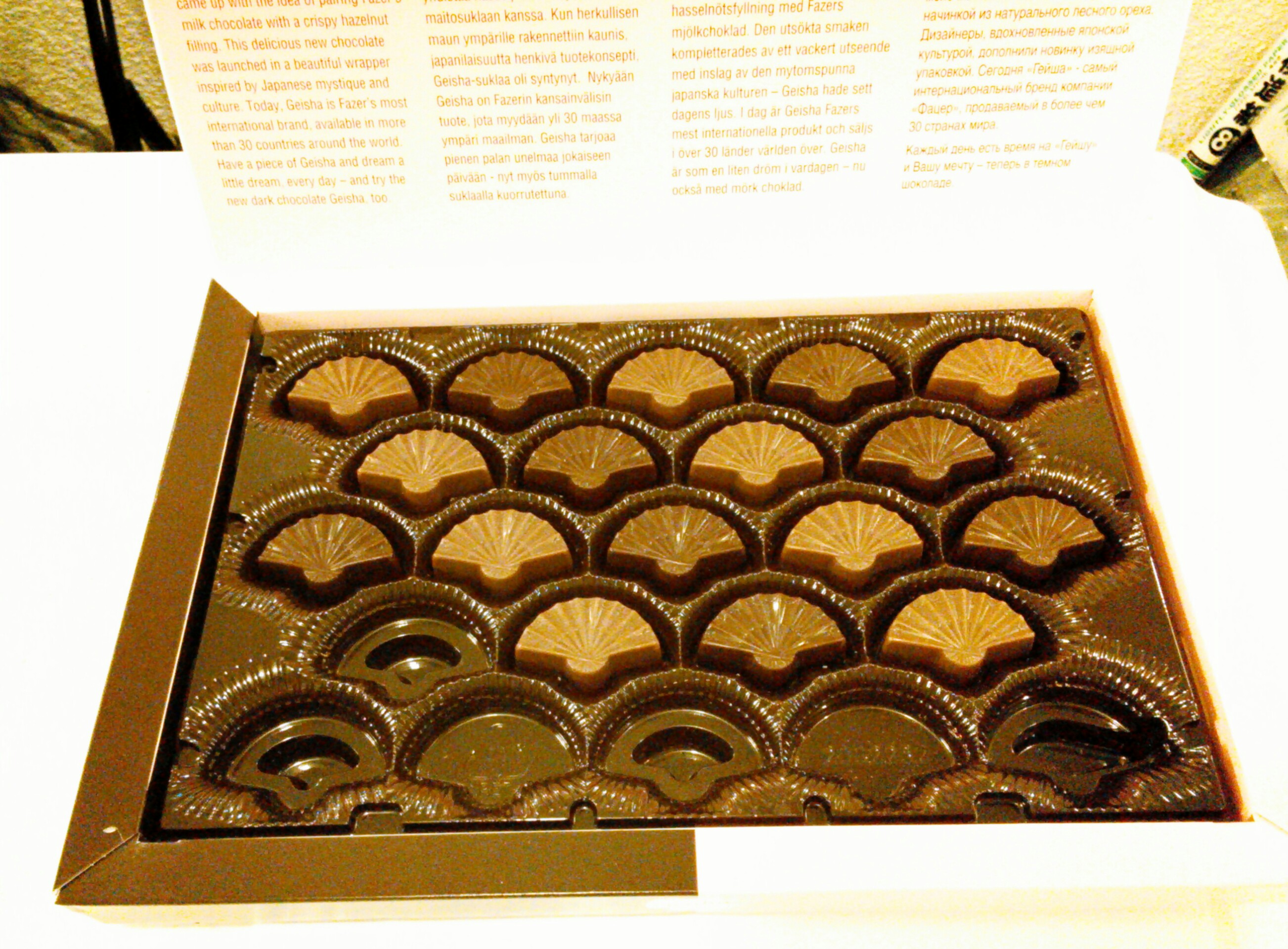 珍しいおみやげ(^^) 知り合いの方がおすそ分けしてくれた フィンランドのおみやげのチョコレート 名前は「ゲイシャ」(°°) 日本とあまり接点がないように思うんだけど なぜに「ゲイシャ」なんだろう…。 扇形のチョコレートはミルクとダークの2種類で 中にはナッツペーストが入っていて 甘すぎず食べやすいお味(*^_^*) 私はダークの方が好きかな!? 投稿ナビゲーション パン教室 (5) じゃ~~んヽ(^。^)丿今日のランチヽ(^-^ ) コメントを残すコメントをキャンセル