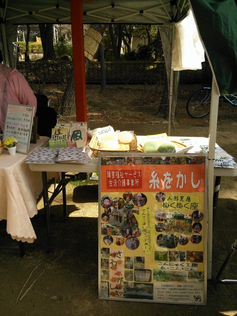2016年3月20日「おいなりさんの第3日曜朝市」の様子です! 今回は3連休の真ん中、しかもお彼岸とあって先月よりは落ち着いた感じでしたが、おはぎや三色団子などの和菓子は好評でした。 マルトヨ数磨さんのコロッケとミンチカツは今月も大好評!気がついたころには売り切れてしまいました。買えなかったお客様すみません。 豊中松前昆布本舗さんは、鳴門産のわかめを量り売り。看板というかPOPがすごくいい味を出していますよね。 いつもお手伝いして下さる豊中市社会福祉協議会の「びーのびーの」さんはオリジナルグッズを販売。かわいらしいグッズがいっぱいでした! 今日はご迷惑かけて申し訳ございません。懲りずにまたよろしくお願いいたします。 久しぶりに似顔絵を描きに来てくださった下中さん、急なお話だったようなのに駆けつけて下さってありがとうございました。 次回は4月17日開催いたします!今度もお天気になりますように。 皆さま、本当にありがとうございました! 投稿ナビゲーション ジャージャー麺セット2016年3月26日(土)・27日(日)おかまちレールロードを開催いたします! コメントを残すコメントをキャンセル